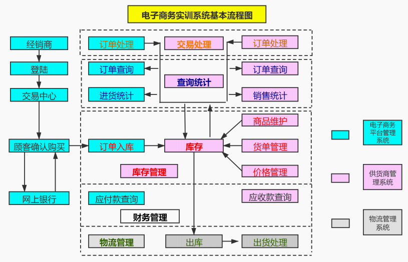 电子商务实训室是通过软件系统仿真模拟电子商务活动,以B2C、B2B、C2C三种交易模式将各个子系统的商业活动区分为具体的岗位,并赋予不同岗位不同的职责和任务。使得学生可以在完成学习任务的同时,获得参与电子商务活动的感性认识,掌握电子商务专业知识的具体运用,进而验证电子商务原理和规律,实现理论与实践相结合的实训教学目标。