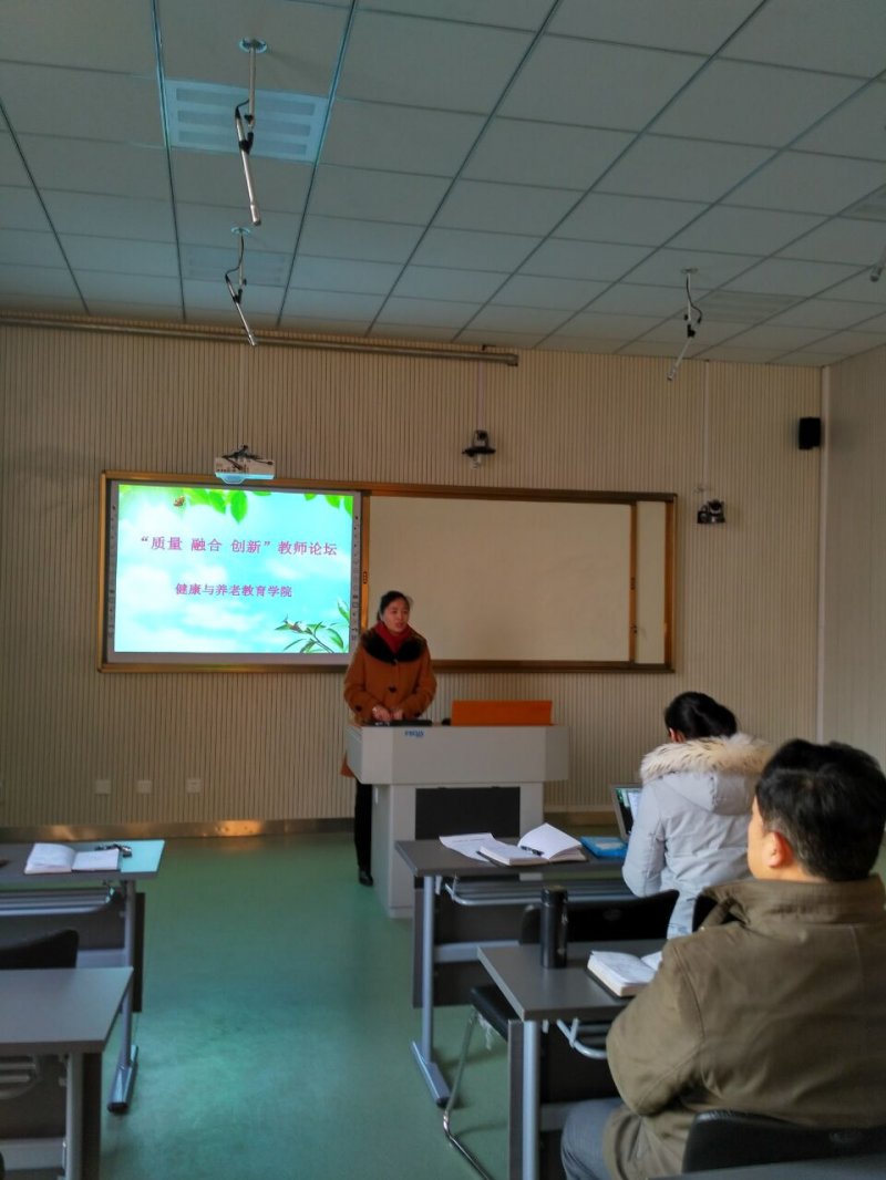 今年是我校的教学质量提升年,为搭建教师成长的平台,为教师提供学习、交流和展示的空间,促进教师对教育教学理念及个人教育教学实践的深刻思考,在理论与实践之间产生对话,12月14日下午,健康与养老学院围绕“质量 融合 创新”为主题开展了教师论坛活动。我校副校长魏红光、教务处石映红主任、健康与养老学院院长王晓斐及我院的全体教师齐聚一堂开展了论坛活动。