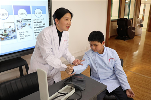 按摩师体验课程中学生通过体验感受,变身小小按摩师为老师们按摩、小小护士课程中学生们为身边的同学量起血压、噎食救护体验课程中大家变身超级英雄为随时救人做好准备......现场气氛热烈,学生们对职业体验课程表现出极大的热情,面对真实的问题,学生们亲身参与、实践、体验和感受,他们像专家一样思考和表达,释放个性、开发潜能、回归生命。