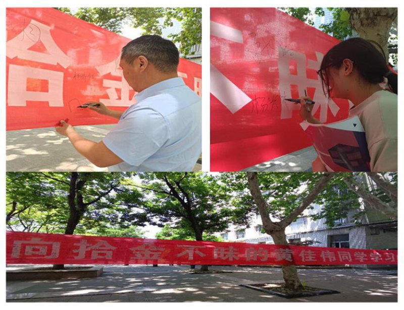 学院开展“向拾金不昧的黄佳伟同学学习”的签名活动