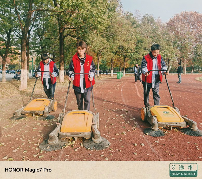 活动现场,志愿者们手持扫帚、簸箕、垃圾袋等工具,分工协作、默契配合。大家弯腰俯身,细致清理跑道旁的纸屑、饮料瓶等垃圾,认真清扫操场内外大量枯黄落叶, 重点整治角落缝隙等卫生盲区。凛冽寒风中,志愿者们干劲十足,忙碌的身影构成了校园里一道靓丽的风景线。经过近两小时的集中清扫,操场路面洁净如新,整体环境焕然一新。