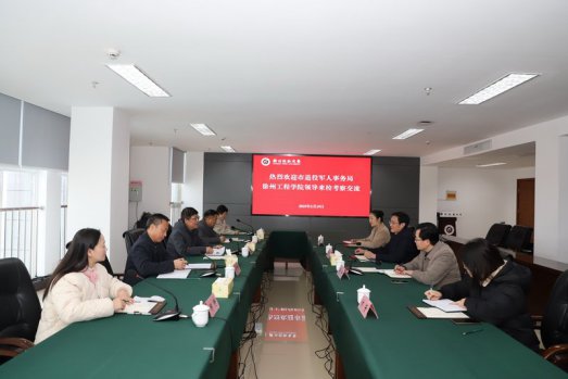 2 月 19 日,徐州市退役军人事务局副局长徐杰、徐州工程学院继续教育学院院长郭鹏来校调研军人学历提升工作,党委书记、校长石月荣接待调研。 石月荣对调研组的到来表示热烈欢迎...